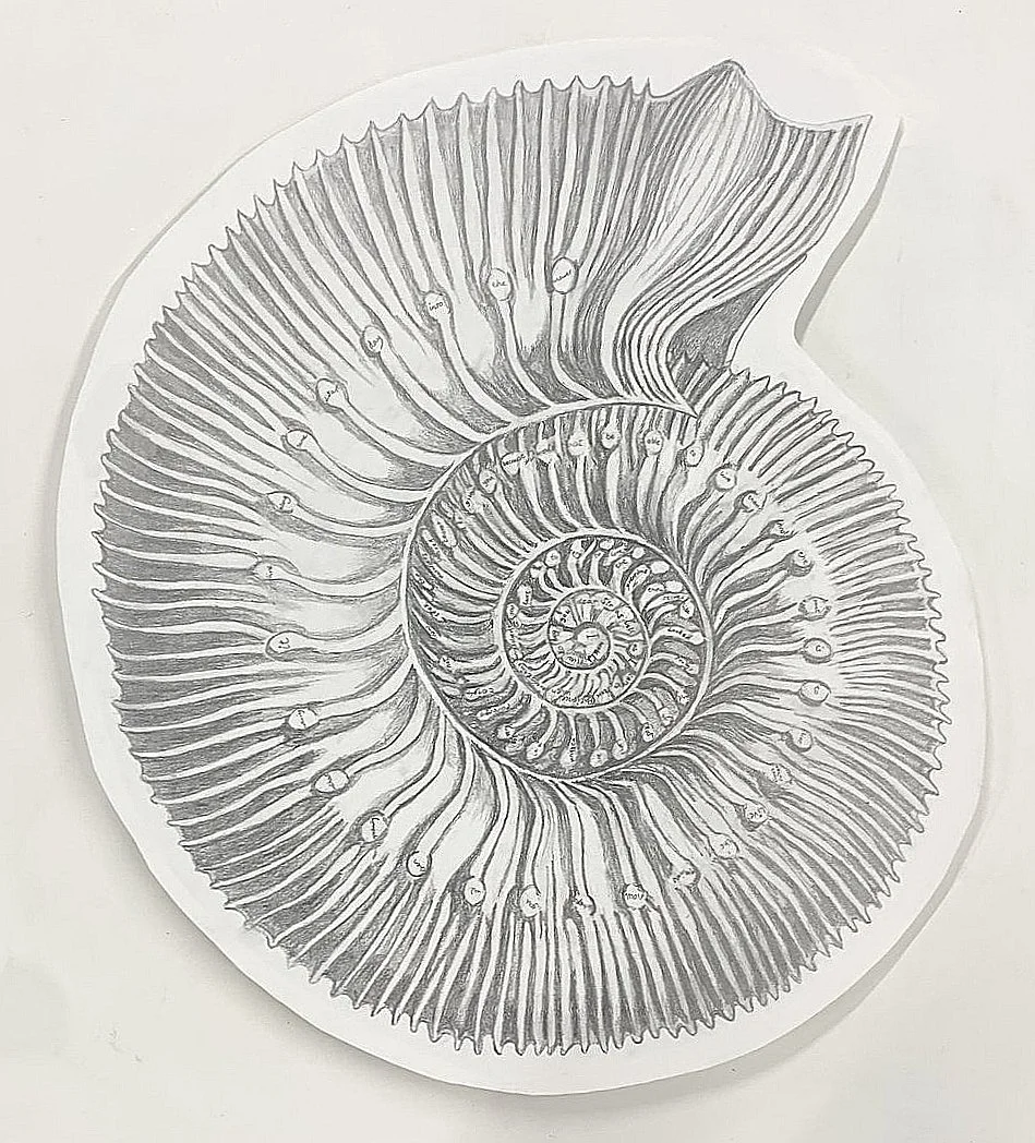 ‘Inspiralation’ is based on a drawing of an ammonite by the evolutionary biologist Erich Haeckel.