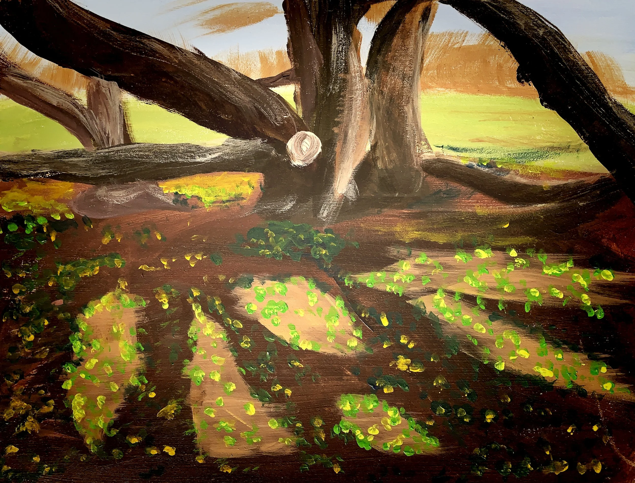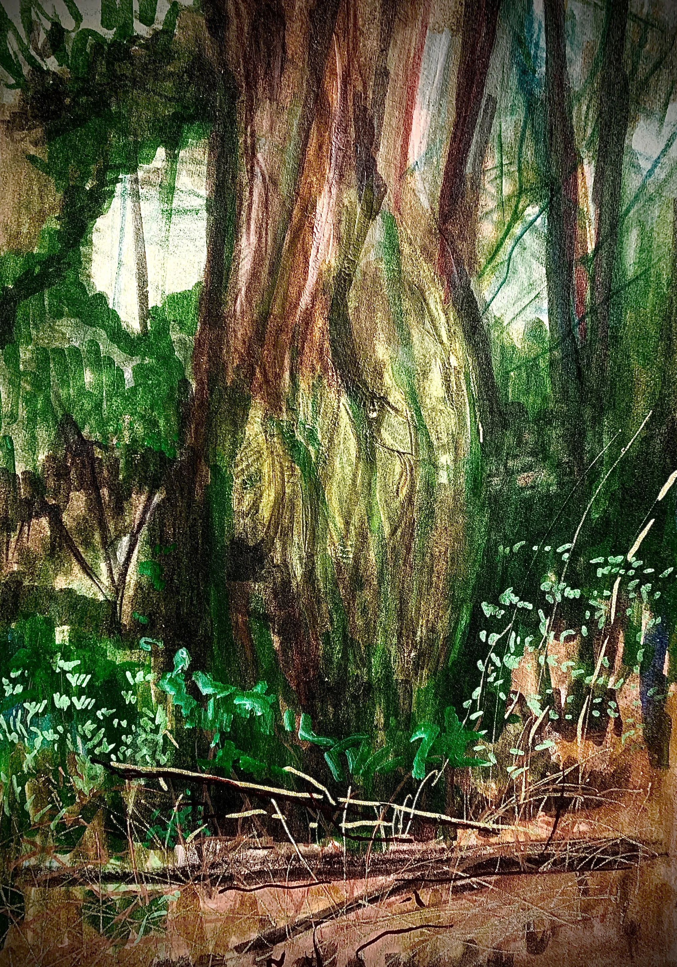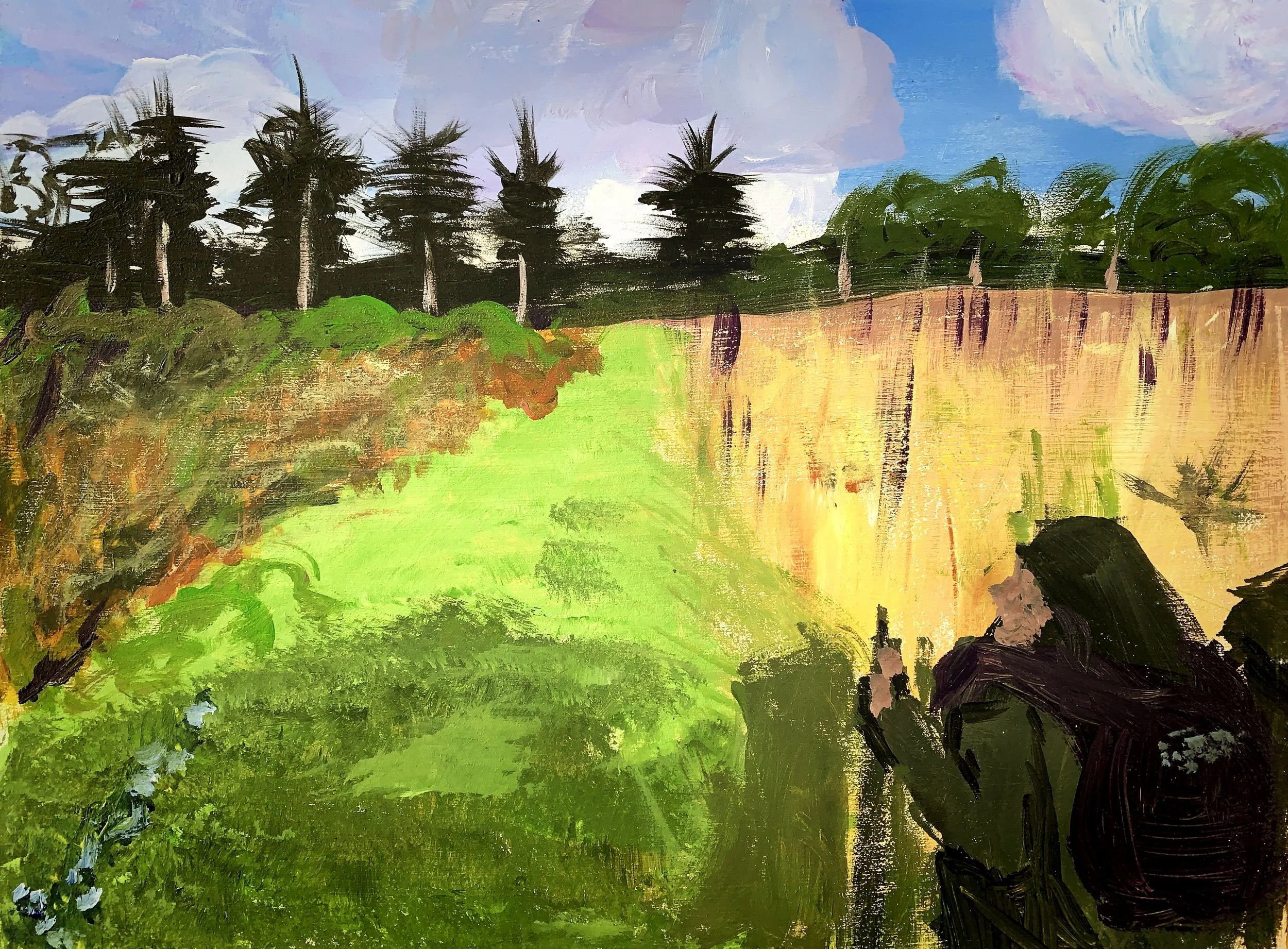 During a painting workshop the tutor encouraged us to focus on what happens at the edges of our composition and paint blocks of colour really quickly using large brushes. The results are much looser than my figurative style and I believe that that they place the viewer more in the landscape rather than admiring from a distance.