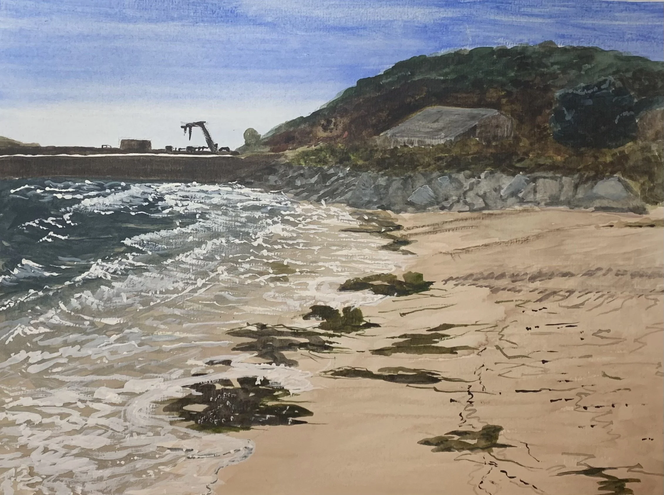 The Isles of Scilly are lit from the reflections of sunlight off the sea. When I made these paintings in Higher Town, St Martins a storm was expected to arrive. Boats were trollied up the beach leaving the usually bustling bay empty of vessels and oddly tranquil.